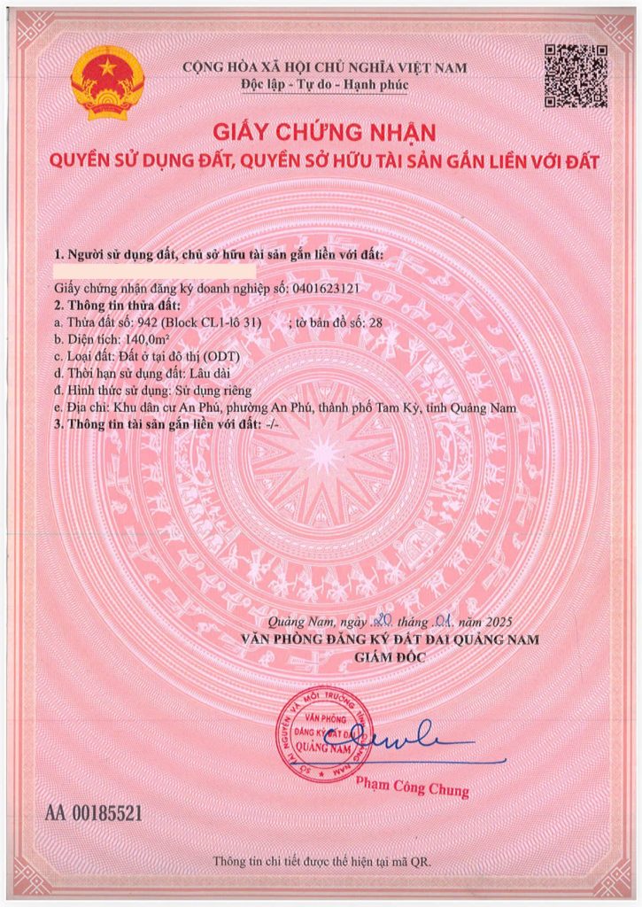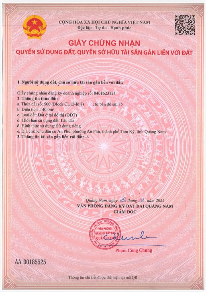 - Chủ đầu tư: Công ty cổ phần đầu tư phát triển hạ tầng Quảng Nam